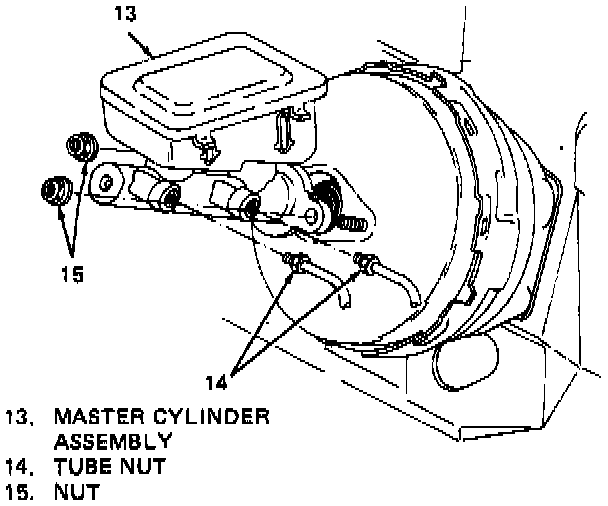 1. Install master cylinder and attaching nuts and torque to 38 Nm (26 ft. lb.).