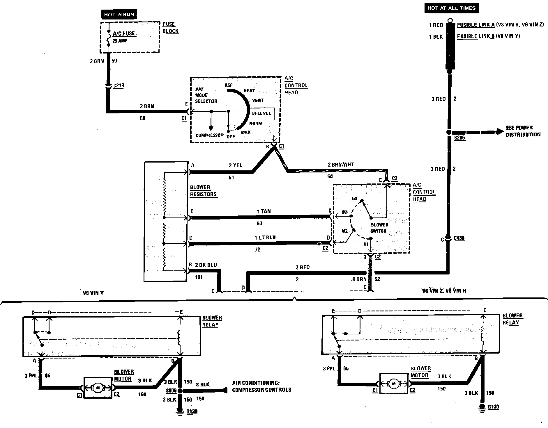 A/C Blower Controls Wiring Circuit W/Manual A/C: