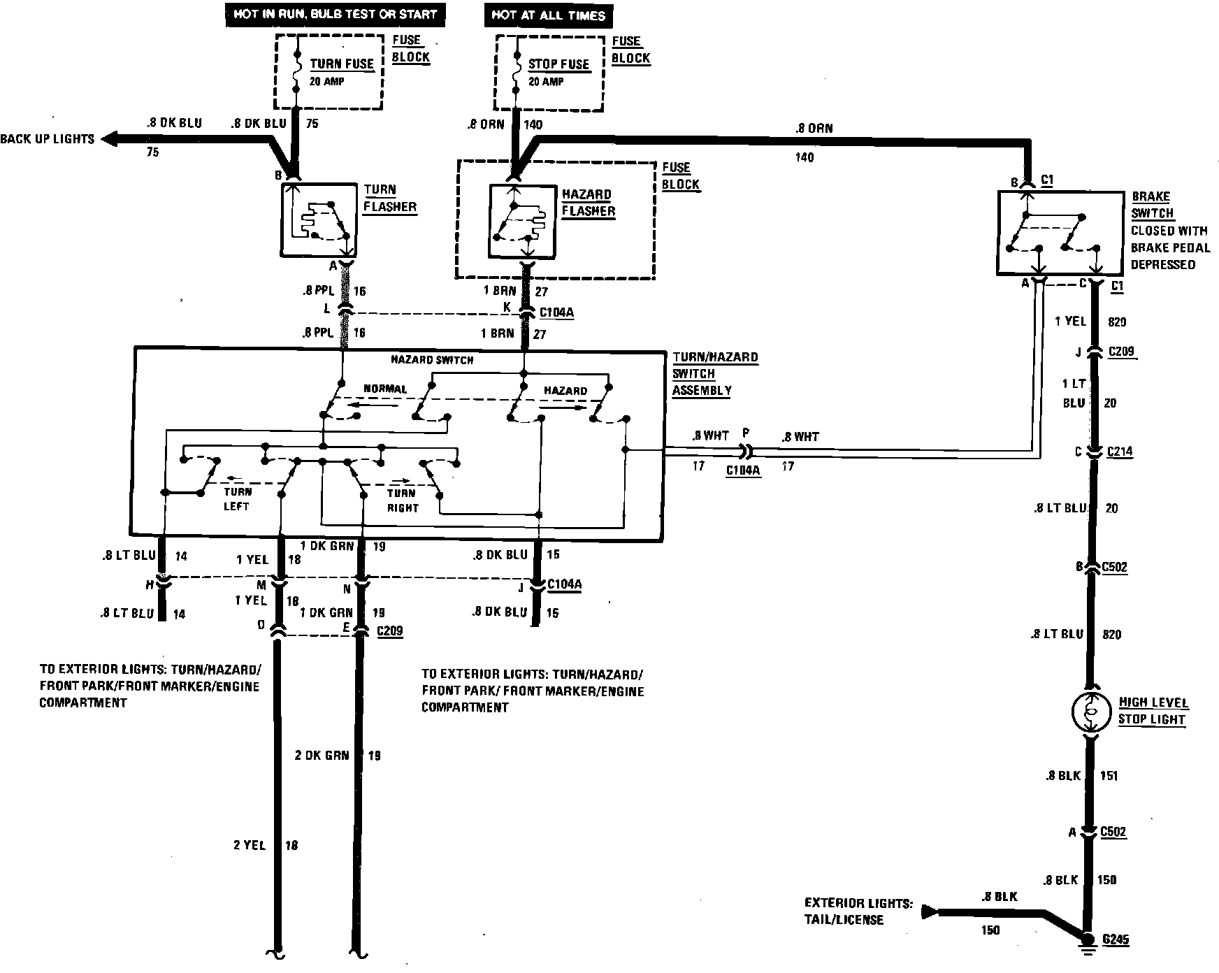 Exterior Lamps Wiring Circuit (Hazard, High Mounted Stop Lamp, Stop & Turn):