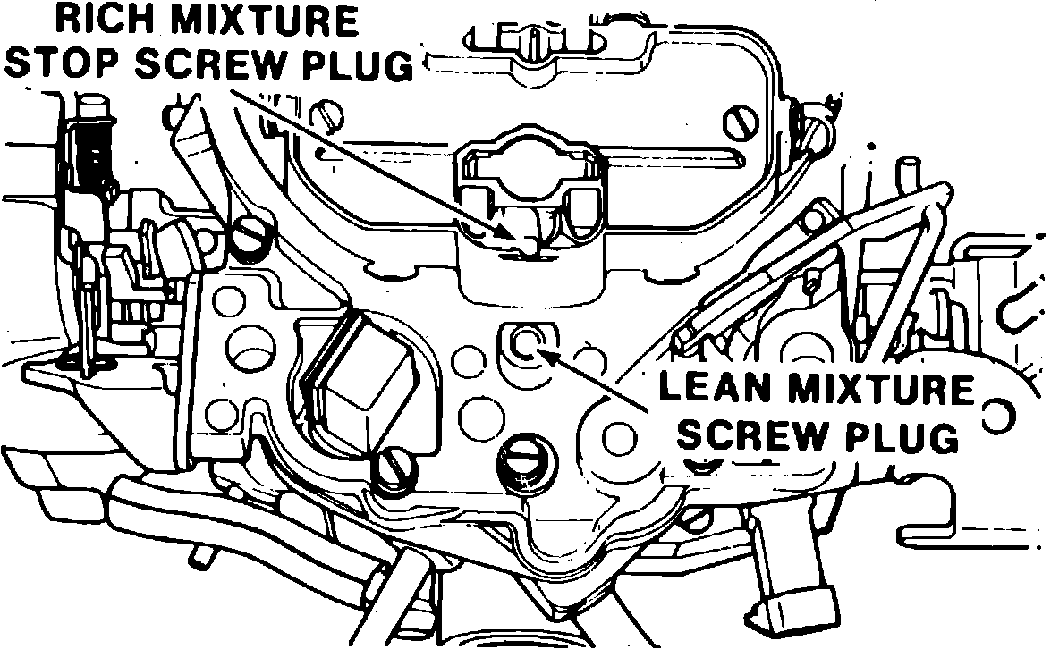 11. Install new plugs over lean and rich mixture screws as shown, Fig. 6, then proceed to ``Idle Air Bleed Valve Adjustment.'' New plugs must be installed, as directed, over lean and rich mixture screws in order to retain settings and to prevent fuel vapors from entering the atmosphere.