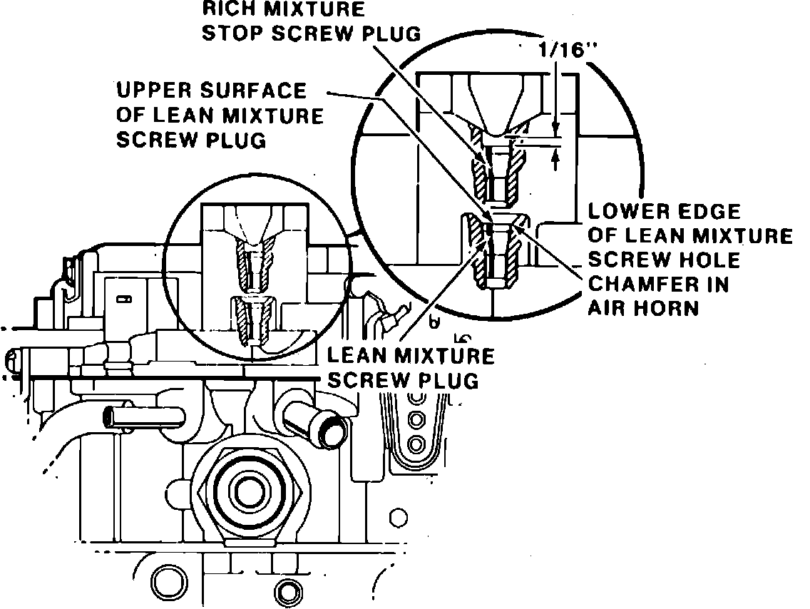 Fig. 5 Lean & rich mixture screw plugs. E2MC-ME & E4MC-ME carburetors: