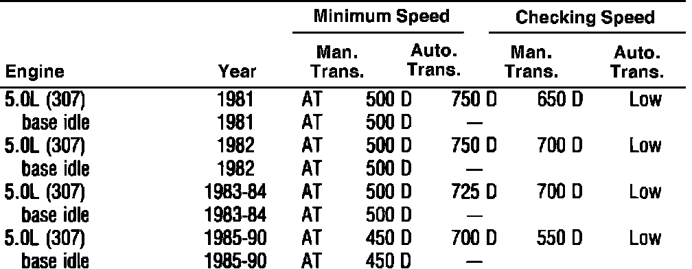 Idle Speed W/Computer Control Specifications - Carbureted: