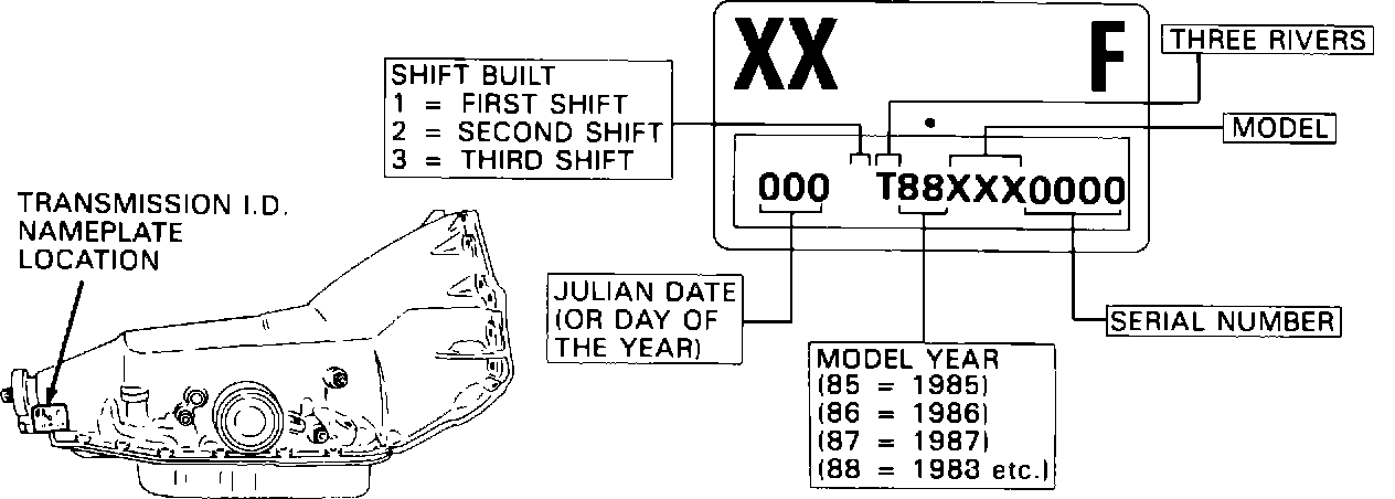 FIGURE 1 - THM 200-4R TRANSMISSION IDENTIFICATION INFORMATION: