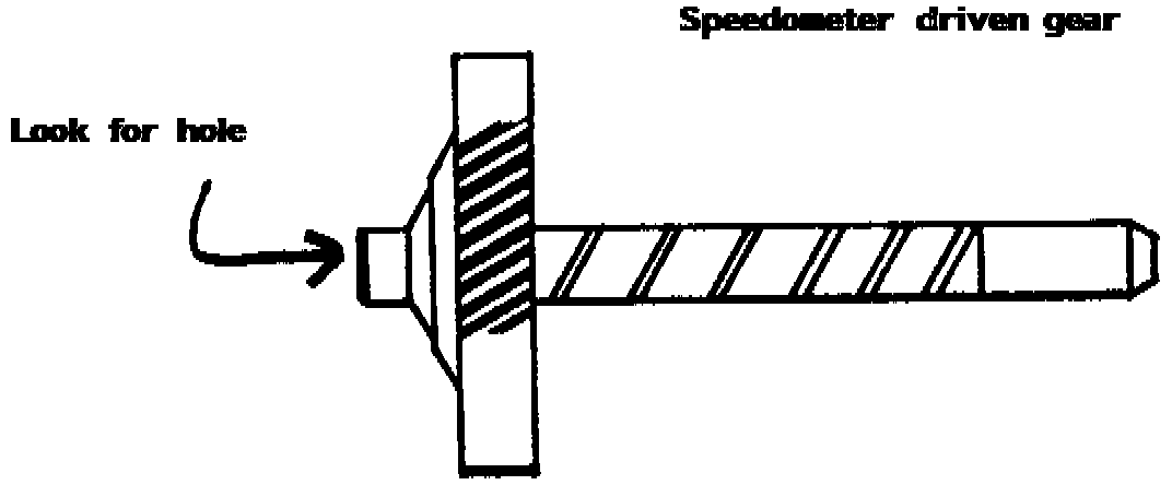 Check the speedometer driven gear shaft for a hole through the center of the shaft, as follows:
