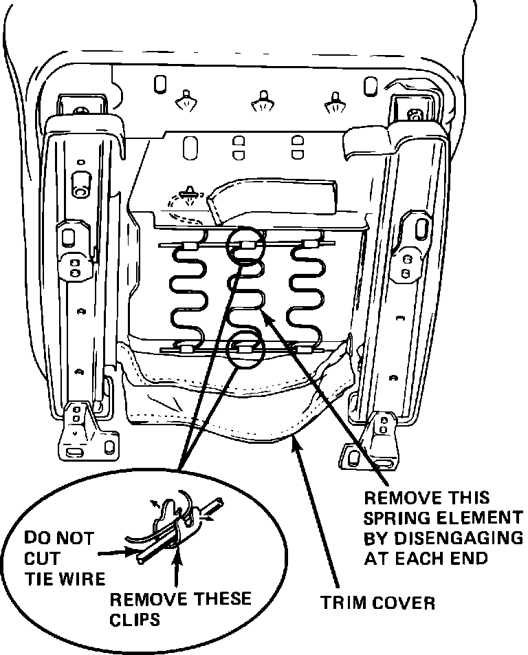 ^ Remove two (2) hog rings from rear of seat trim to gain access to rear of element.