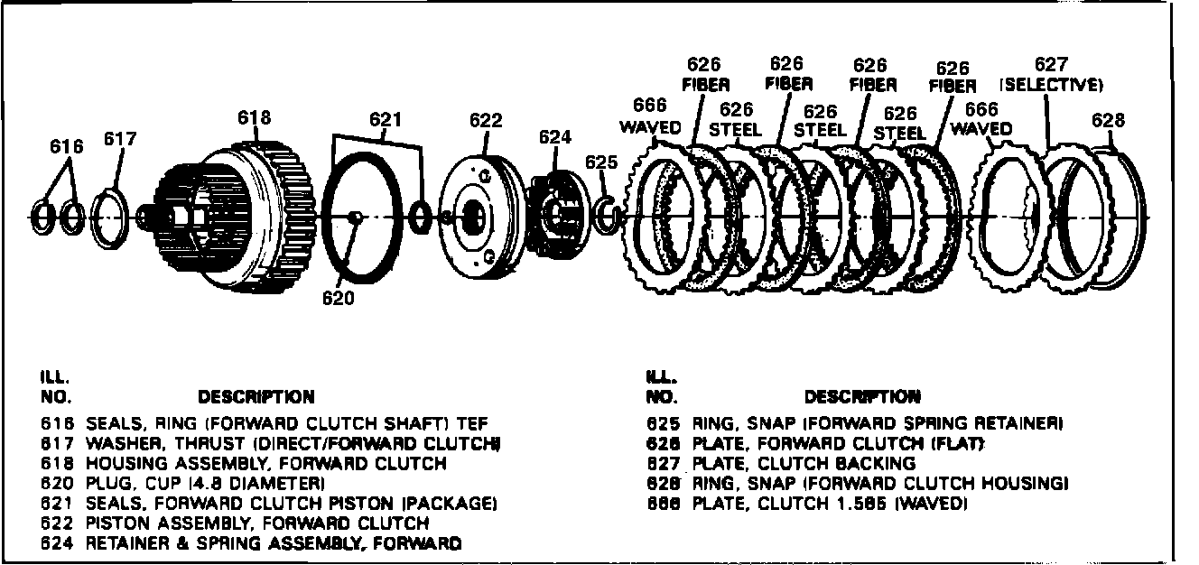 The THM 200-4R "garage shift package" (refer to Figures 2 and 3) softens the Park/Neutral to Drive shift engagement feel by cushioning the apply of the forward clutch piston. The cushioned apply increases shift time, this does not indicate a transmission durability concern.
