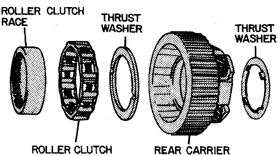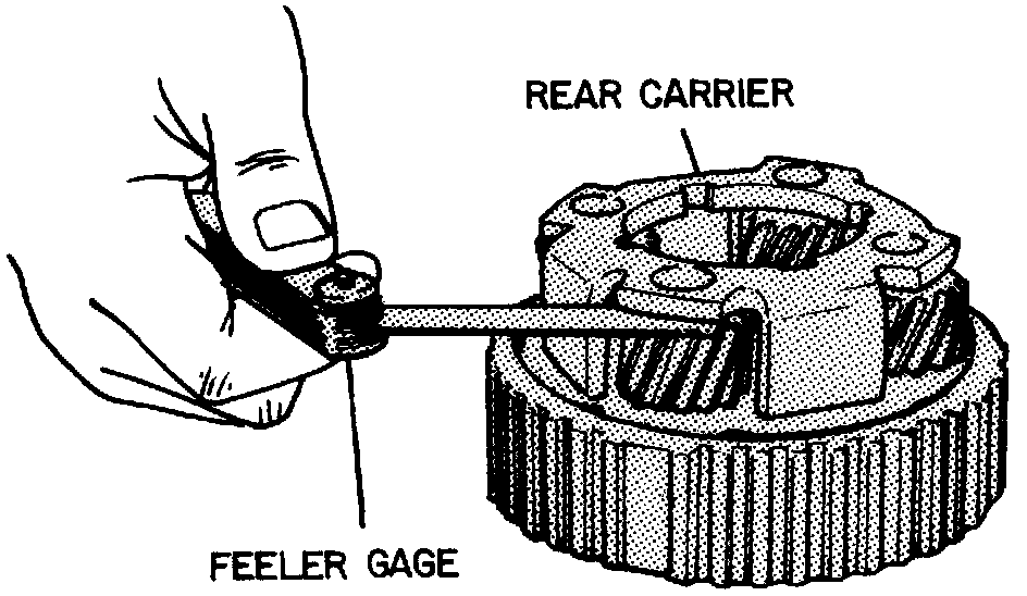 3. Remove and check rear carrier to clutch thrust washer for excessive wear.