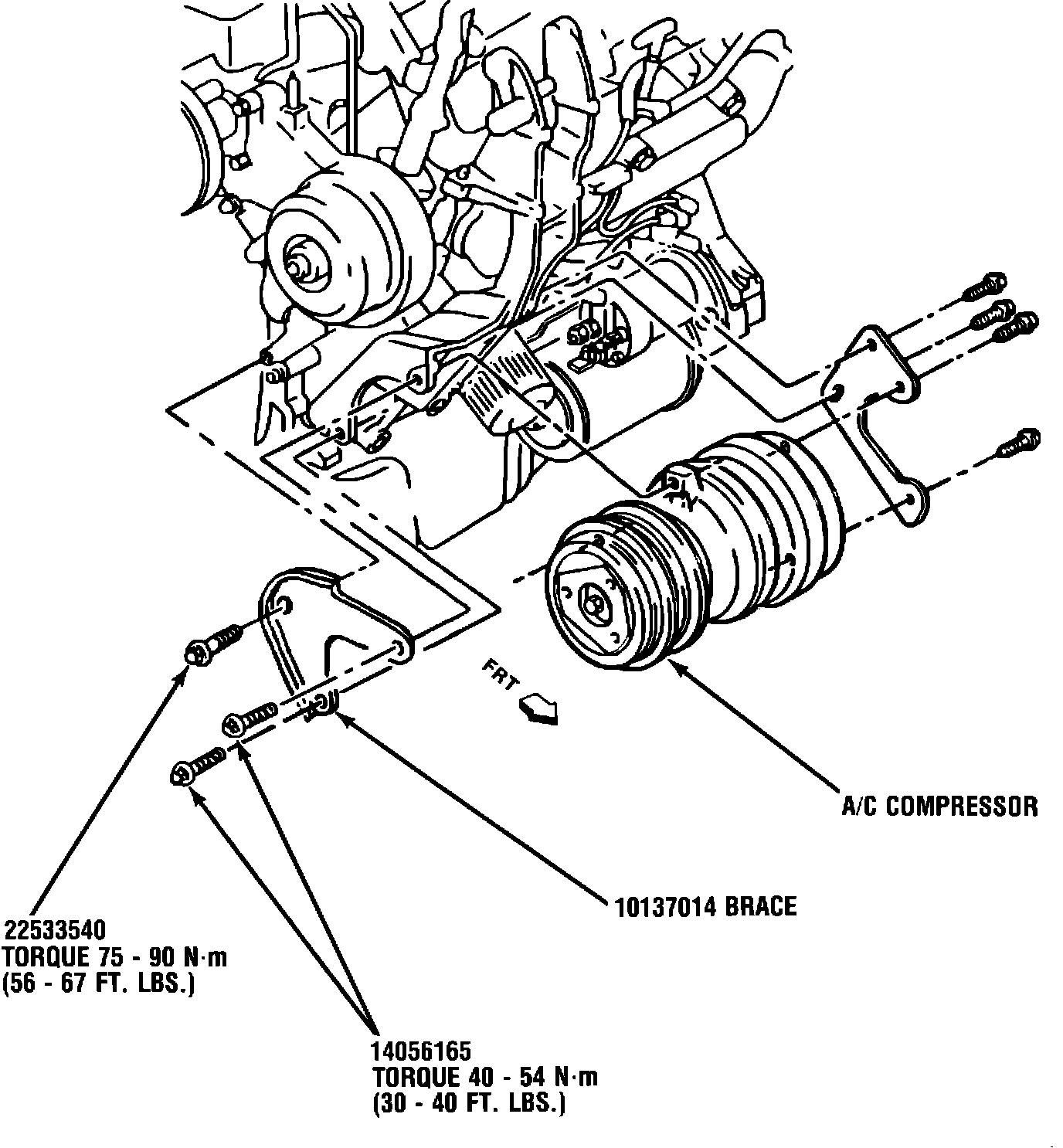 If customer comments are received on this condition, it may be addressed by the addition of a new mounting brace for the A/C compressor. The part numbers for the brace and the attaching parts and the procedure are as follow.