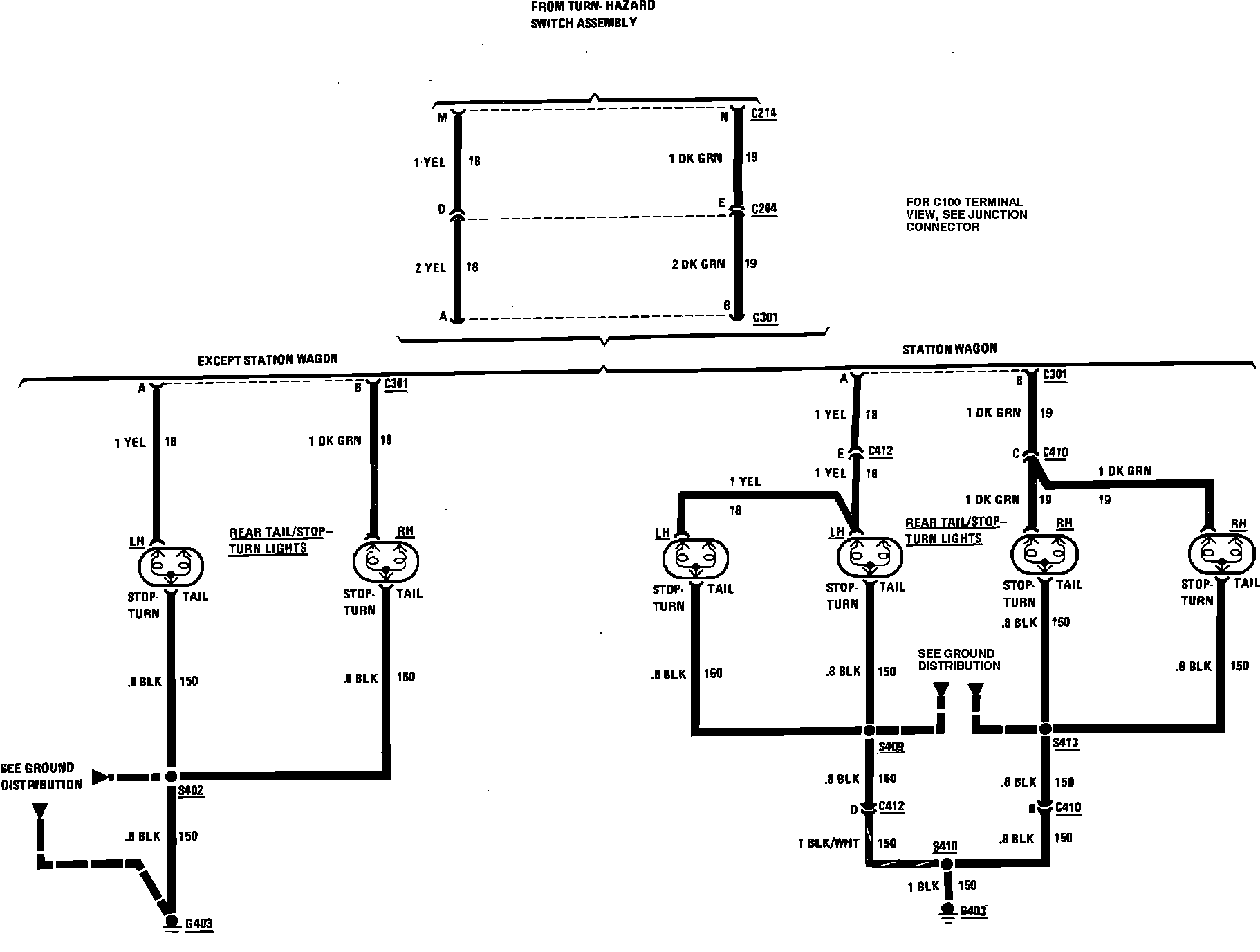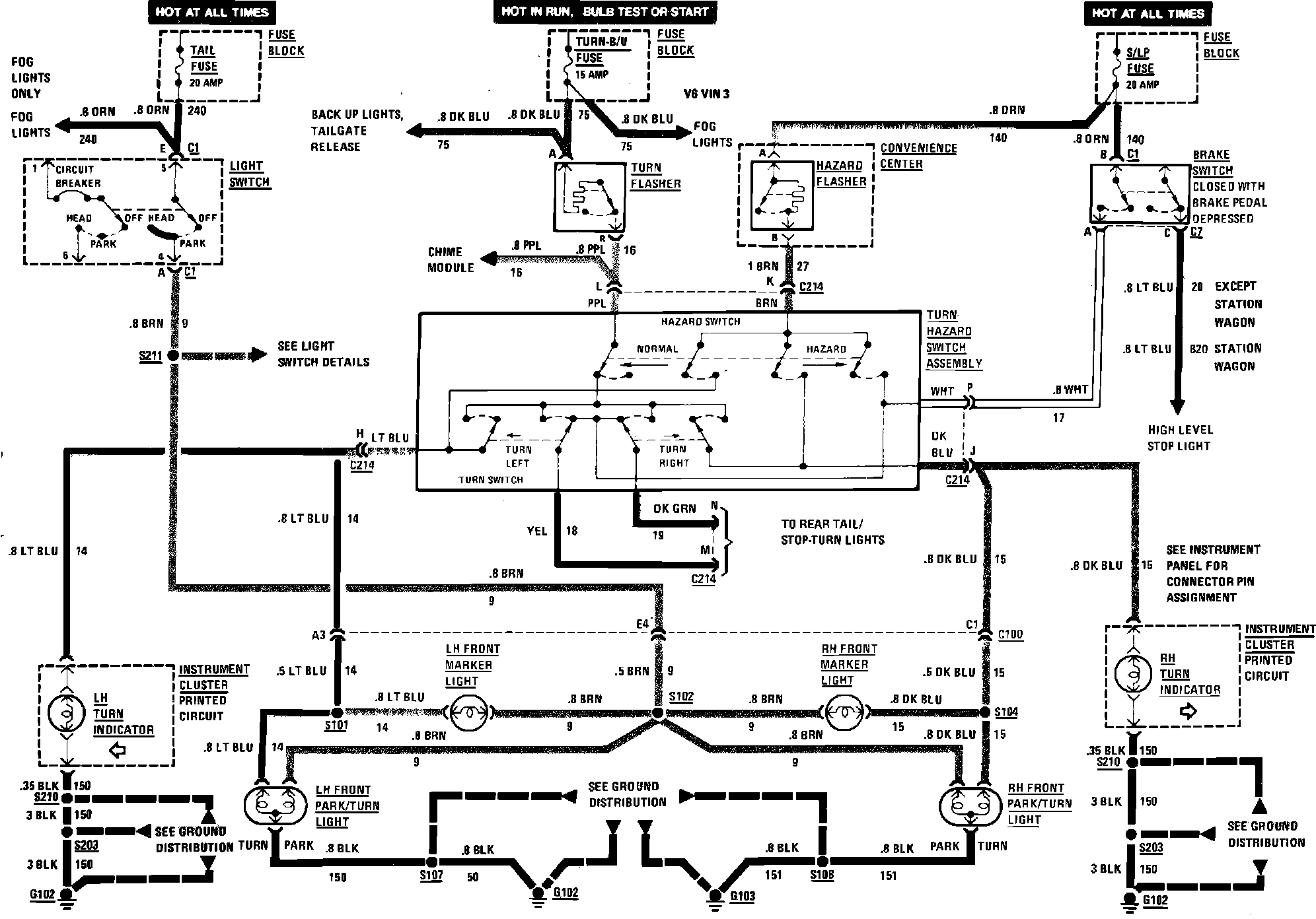 Exterior Lamp Wiring Circuit (Part 1 Of 2, Front Marker, Hazard, Park, Turn & Stop Lamp):