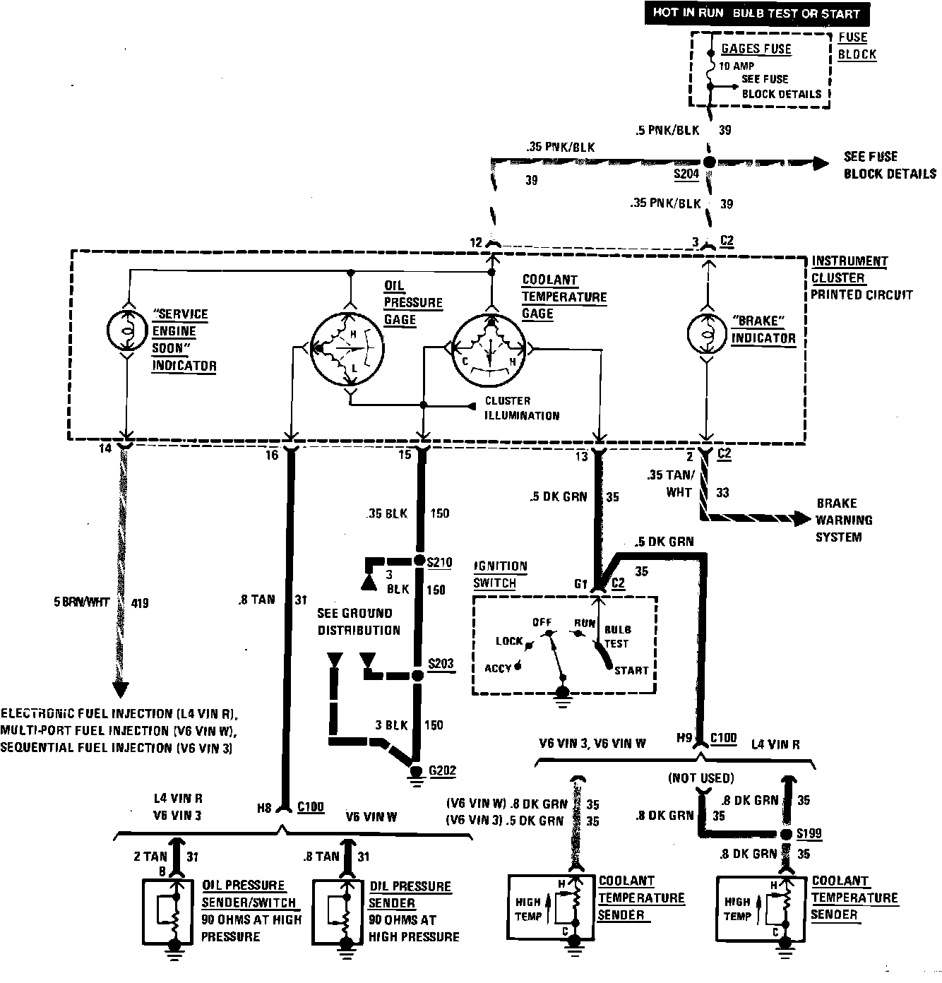 Instrument Panel Wiring Circuit Gauges Cluster Indicators, Coolant Temp Gauge & Oil Gauge: