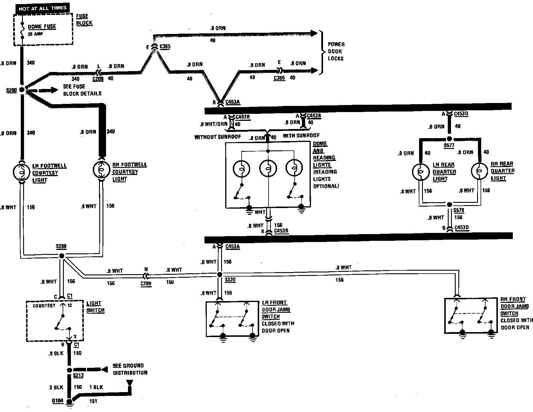 Interior Lamp Wiring Circuit (Courtesy, Dome, Reading & Rear Quarter Lamp) 2 Door: