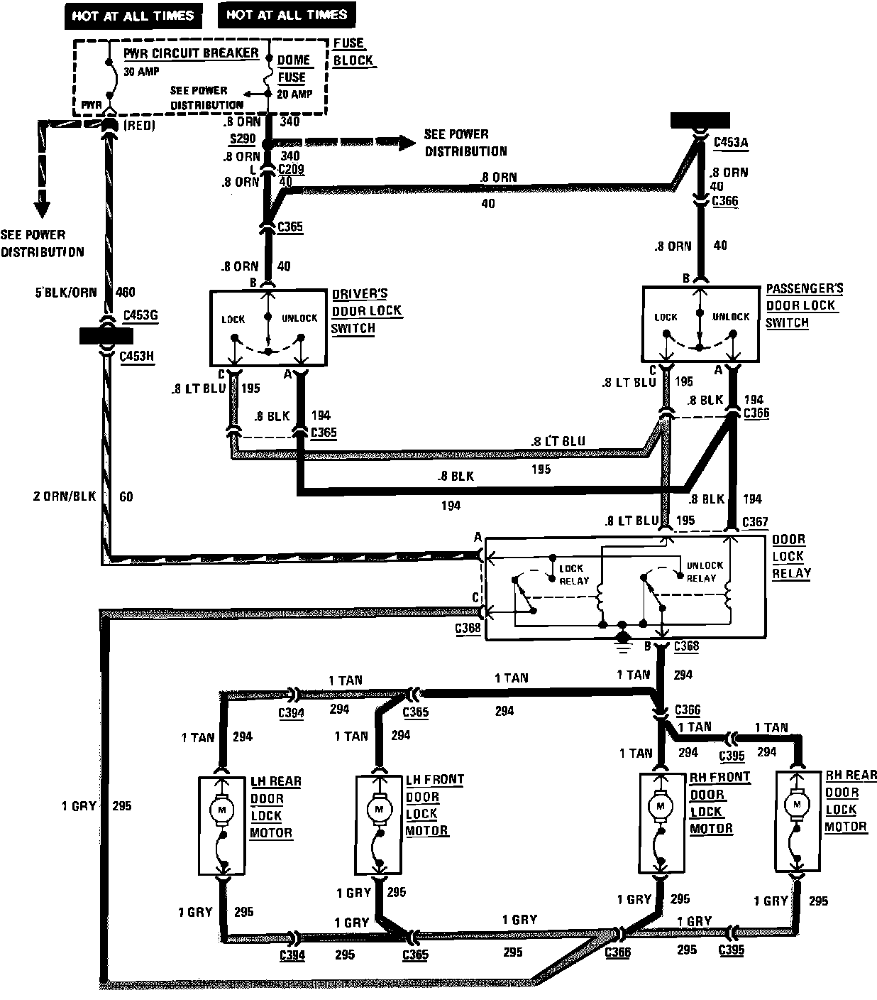 Power Door Locks Wiring Circuit (4 Door):
