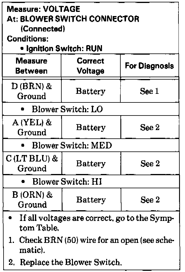 Blower Switch Test: