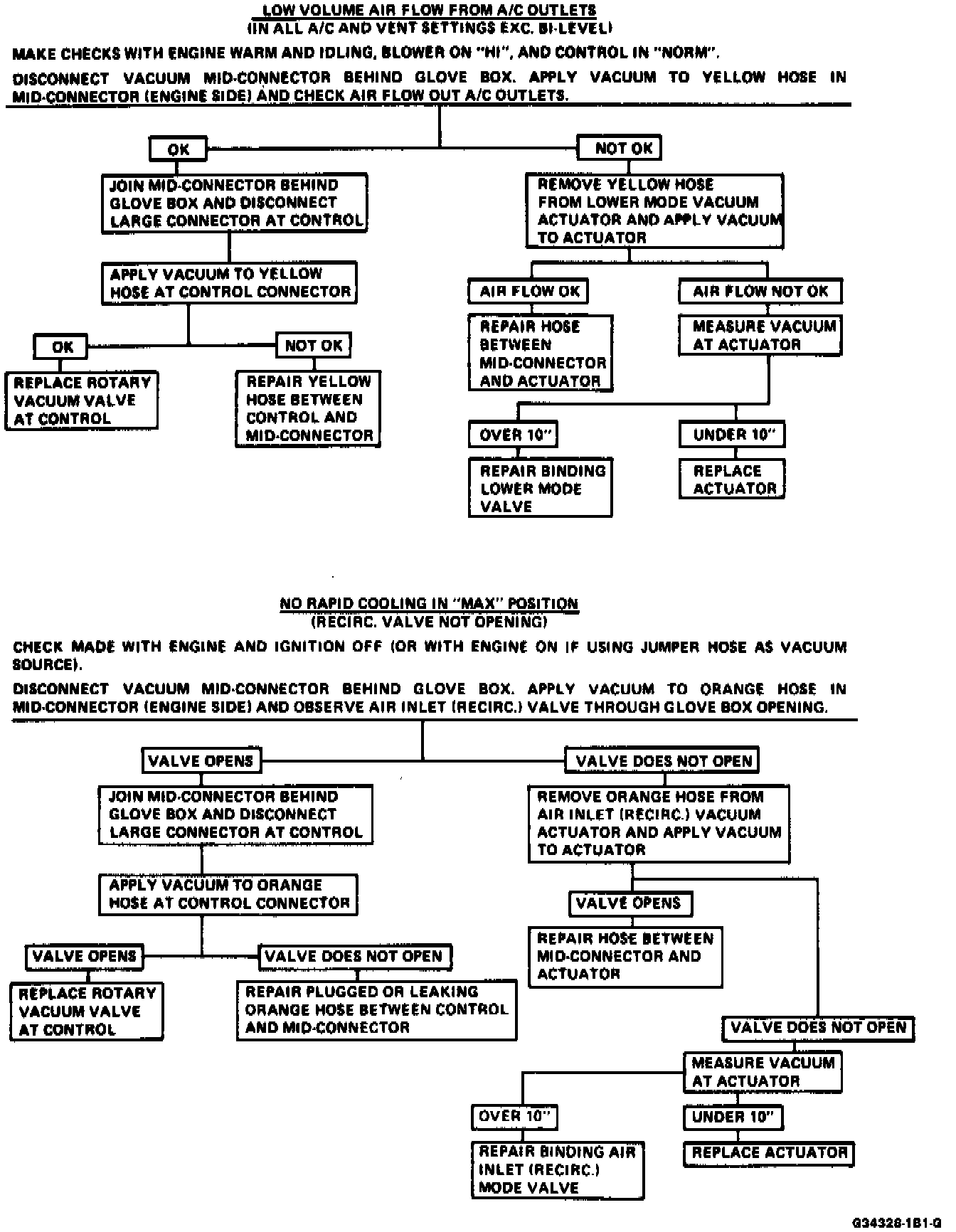 Refer to the following charts for A/C System vacuum circuit diagnosis. Additional vacuum schematics can be found under Air Door Actuator. Air DoorVacuum Circuit and Operating Chart: