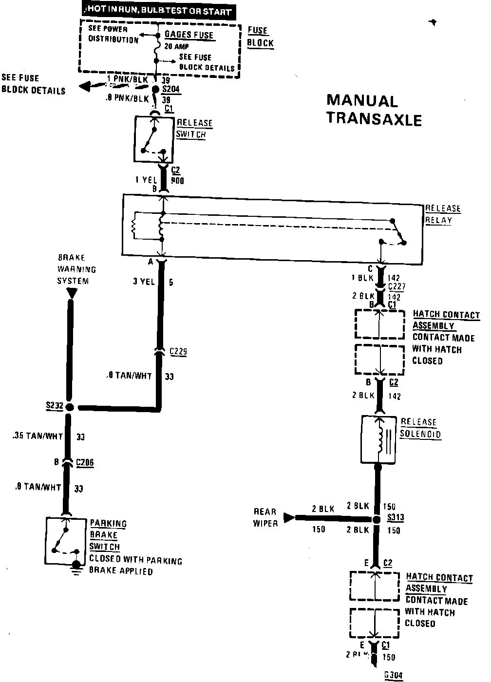 Fig. 170 Hatch Release Wiring Circuit W/Manual Transaxle:
