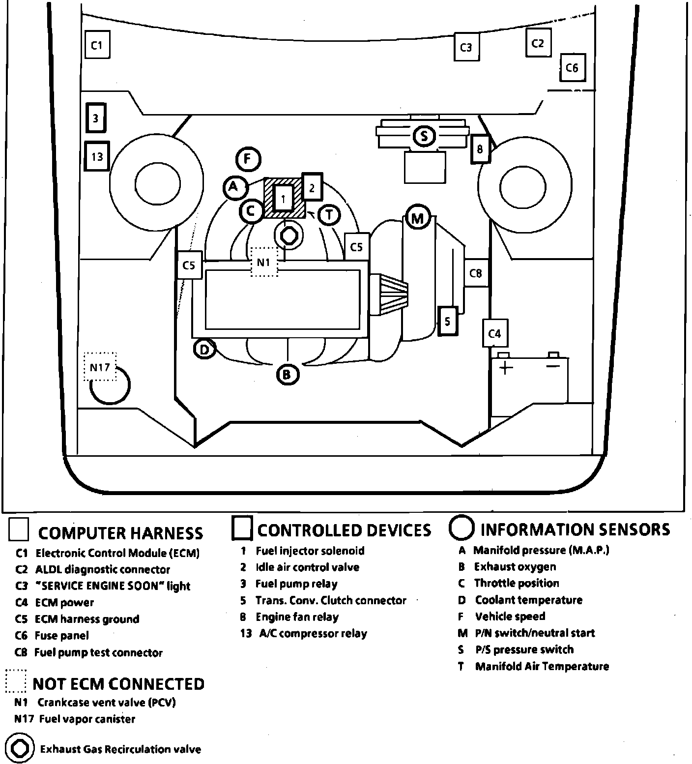 Fig. 62 Emission Component Location. 1987 Sunbird & Firenza W/4-121/2.0L OHC Engine: