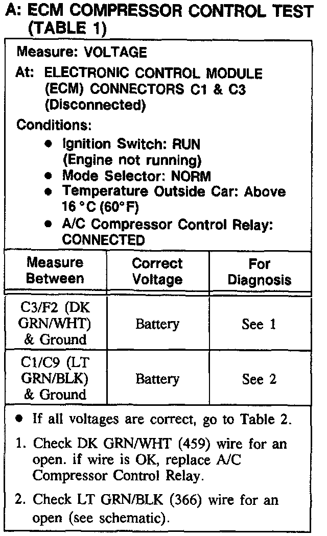 ECM Compressor Control Test Table 1: