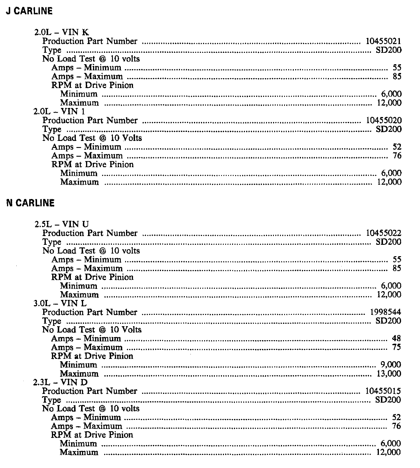 STARTER SPECIFICATIONS