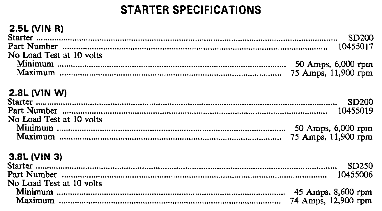 STARTER SPECIFICATIONS