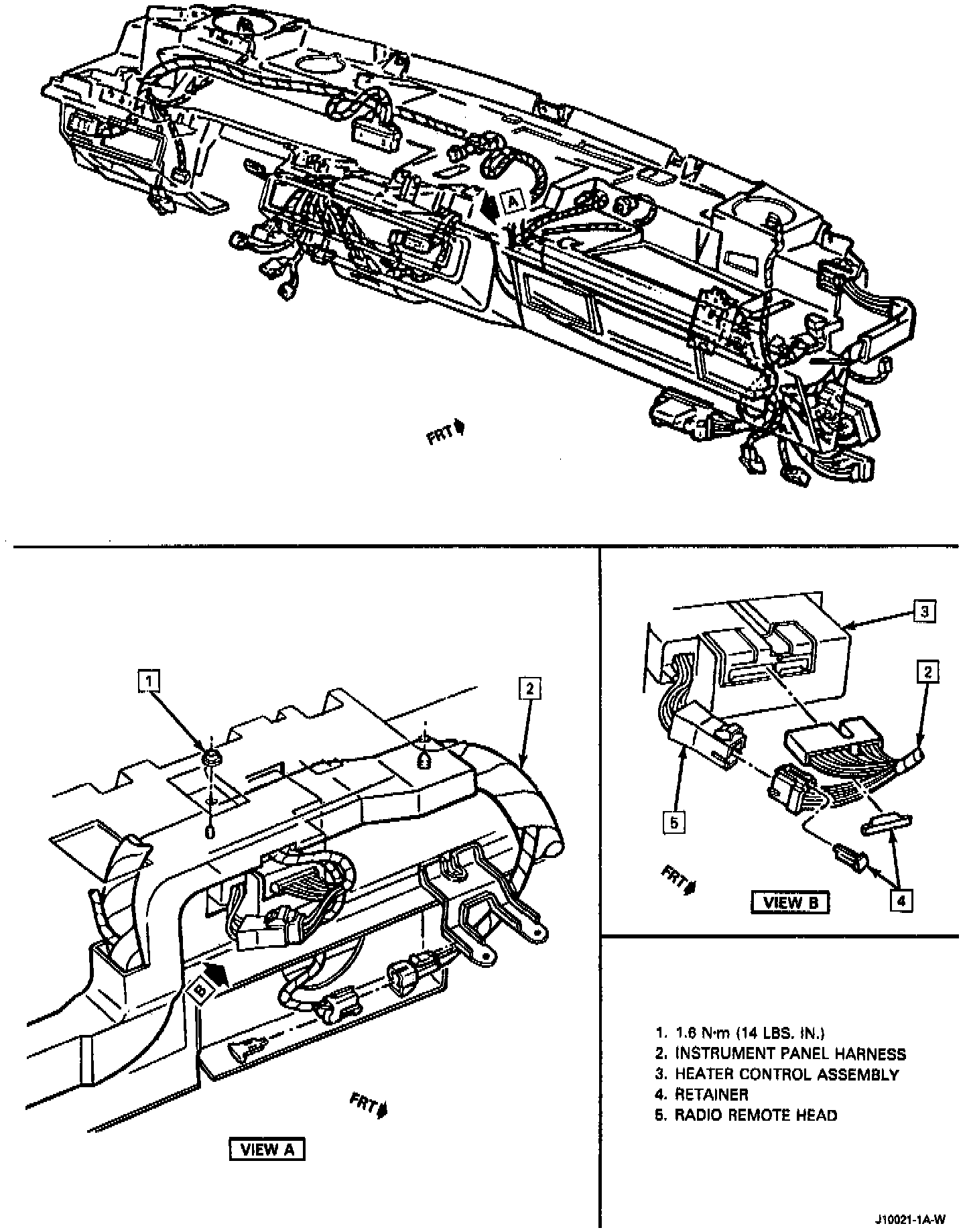 3. Tilt top of cluster trim plate downward, releasing clips that mount bottom of plate to dash, and remove plate.
