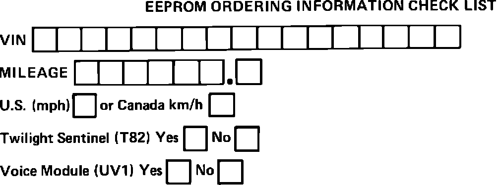 The following information must be given to the Delco Electronics Service Center when ordering a new EEPROM: