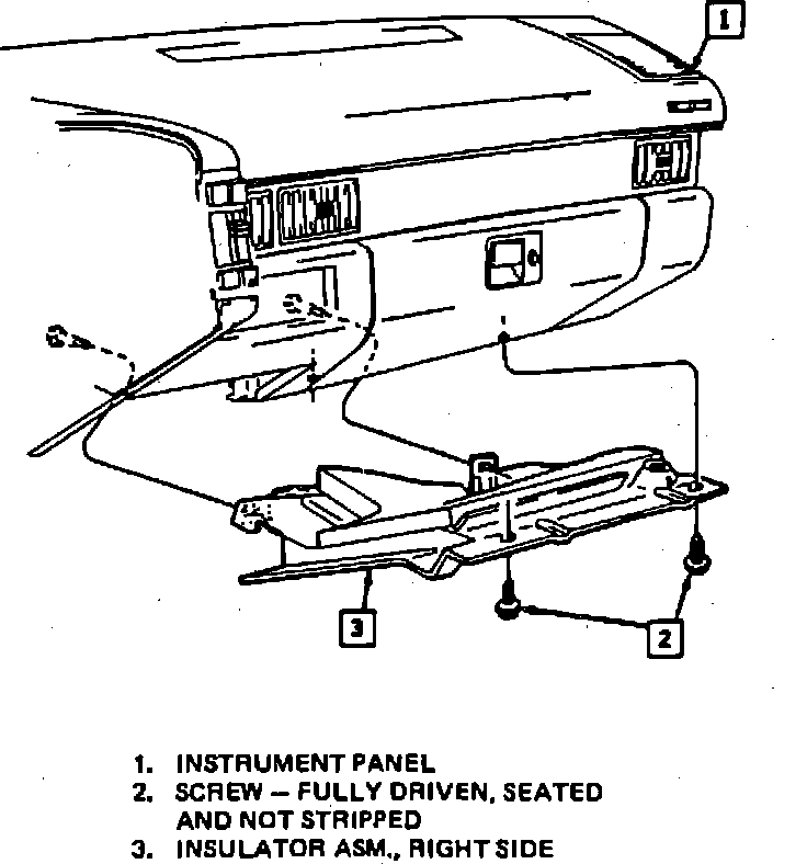 5. Open instrument panel compartment door, remove compartment attaching screws and then compartment.