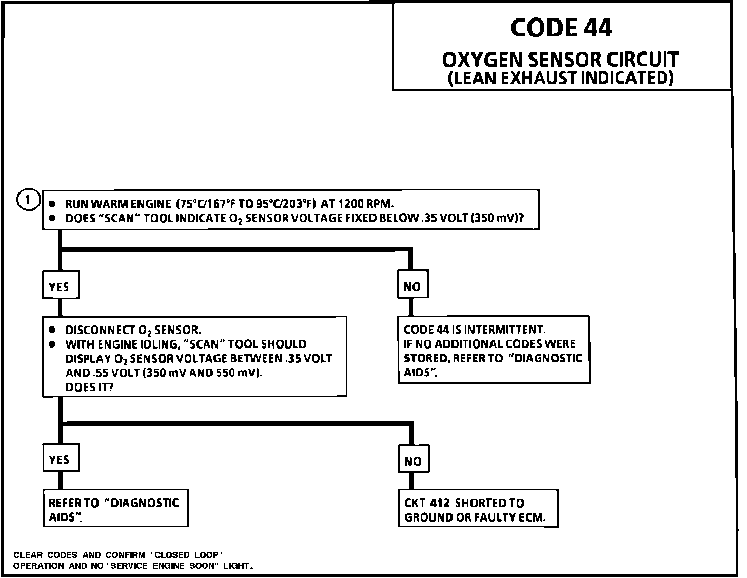 1. Code 44 is set when the 02 sensor signal voltage on CKT 412: