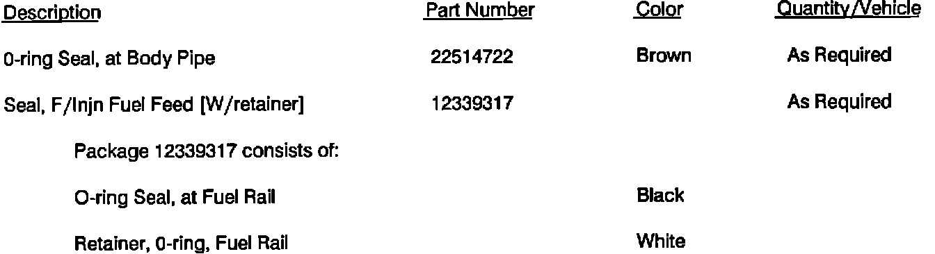 Part numbers are listed for those rare cases in which O-rings or retainers may be lost or damaged during removal of the fuel feed hose (all parts listed are now available from GMSPO).