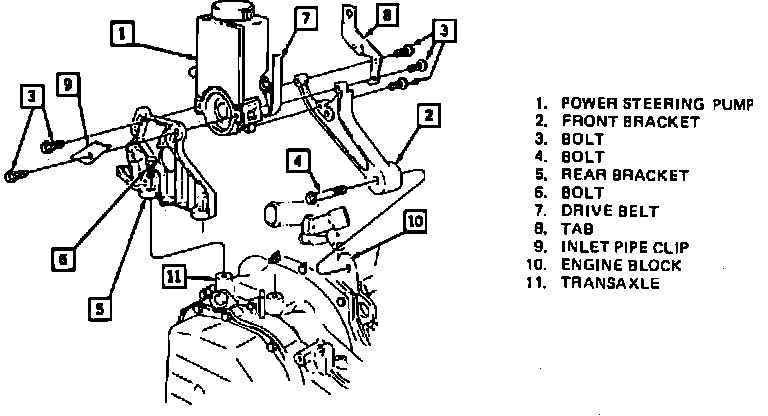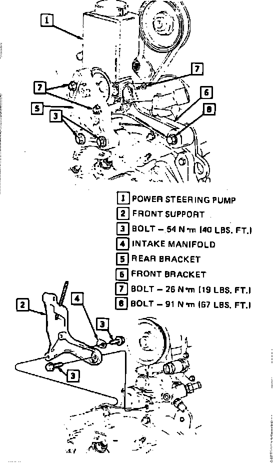1. Disconnect pressure and return lines from power steering pump. Allow fluid to drain into a suitable container.