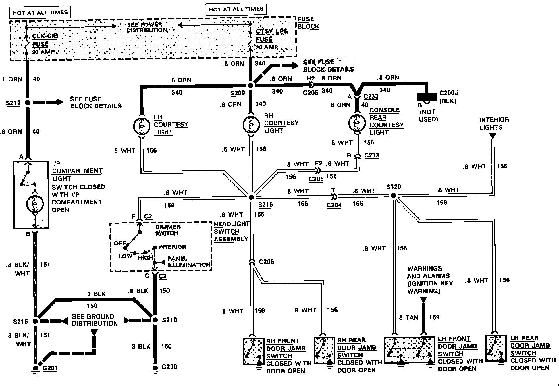 Interior Lights (Courtesy, I/P Compartment) 4 Door Standard: