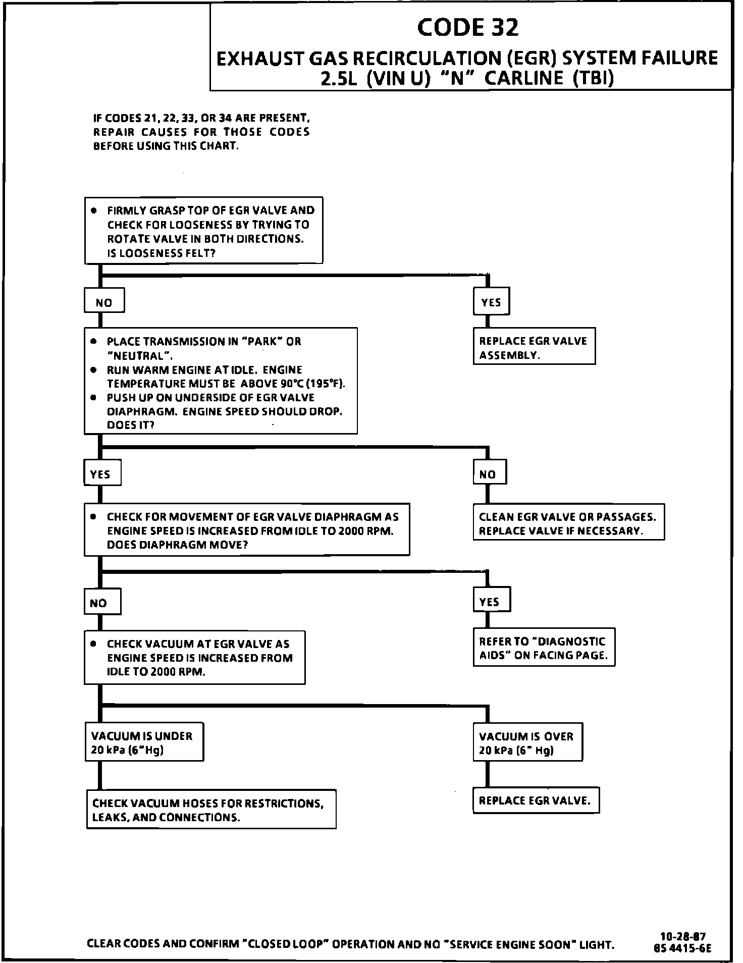 SERVICE MANUAL UPDATE - SECTION 6E2 - DRIVEABILITY AND EMISSIONS - ADD CODE 32 FACING PAGE AND CHART