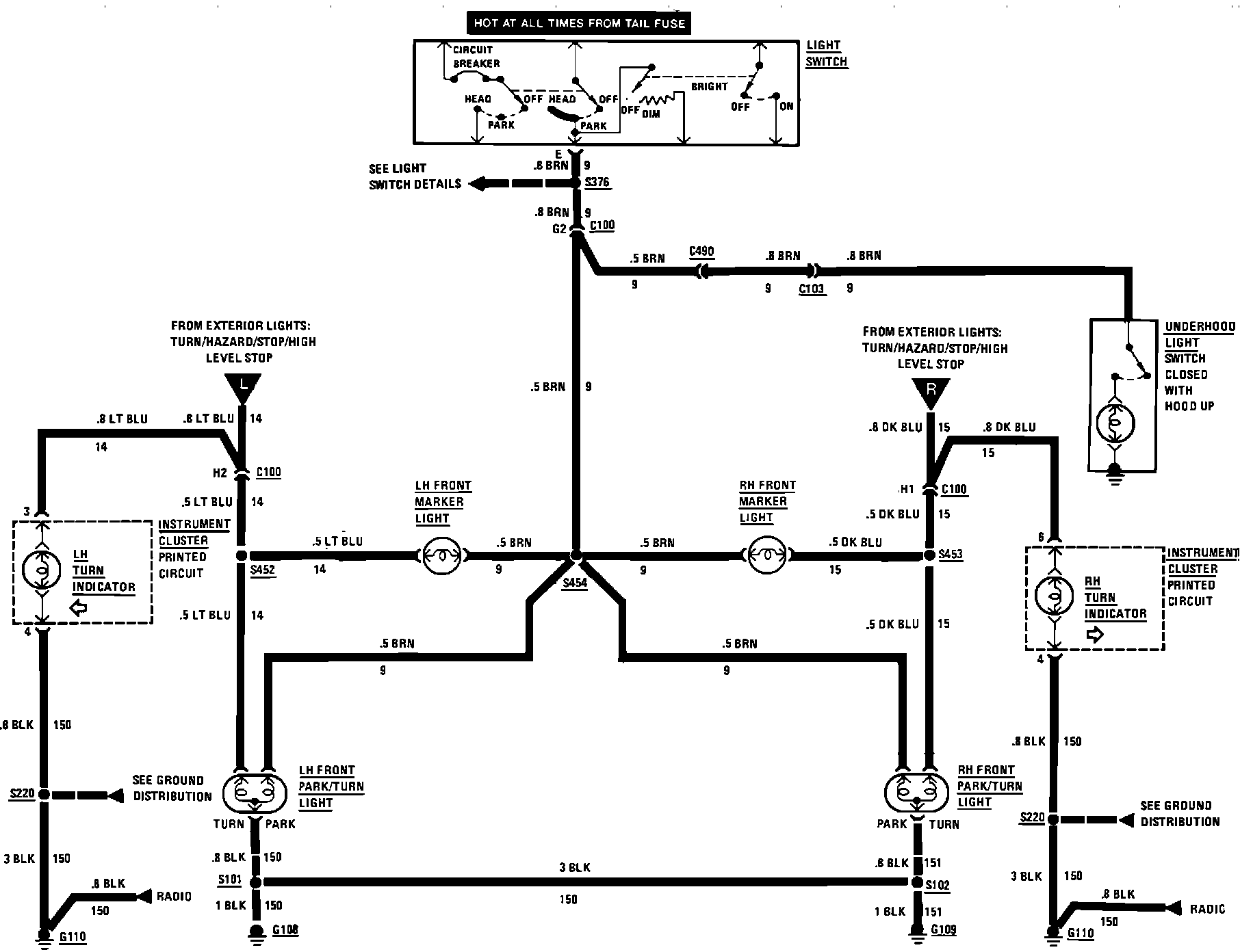 Exterior Lamps (Front Marker, Front Park, Hazard/Turn & Underhood):