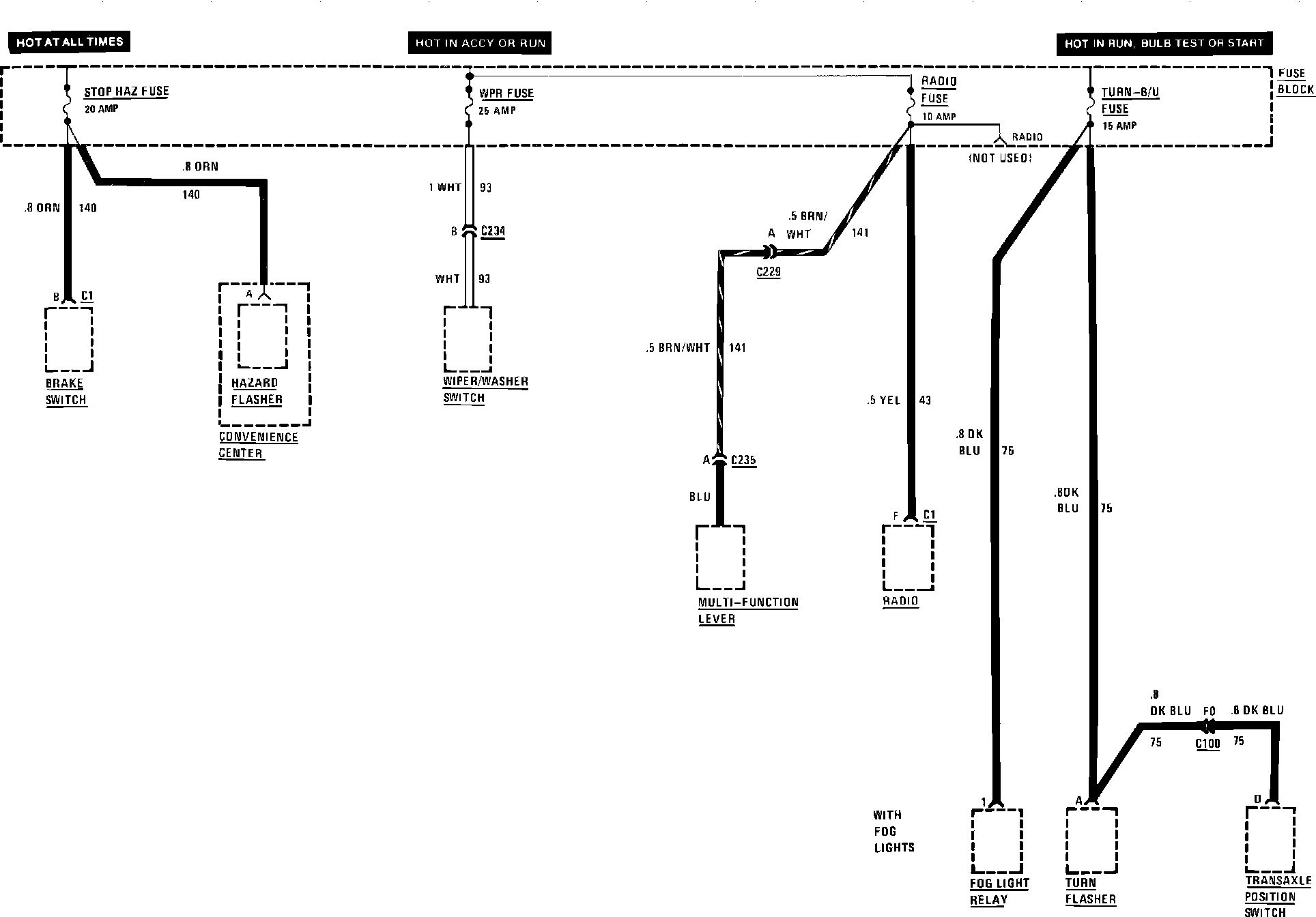 Fuse Block Details (Hazard, Radio, Stop, Turn/Back-Up & Wiper Fuse):