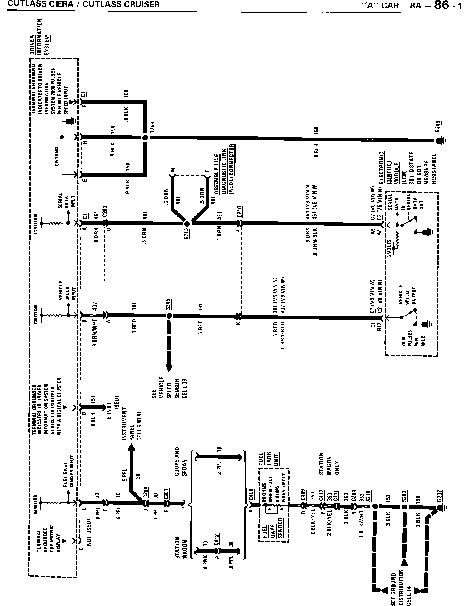 Pages 8A- 86-1 and 8A- 86-3 contain incorrect wiring harness connector information for the Driver Information System. These pages have been corrected and are reproduced as part of this bulletin. Please mark references to this bulletin on the above pages in your 1989 Cutlass Ciera and Cutlass Cruiser Service Manual.