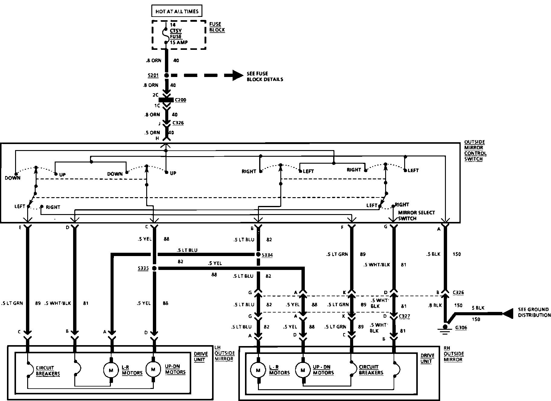 Power Mirrors Wiring Circuit: