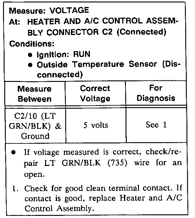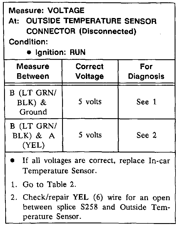 Outside Temperature Sensor Test (Table 1 Of 3):