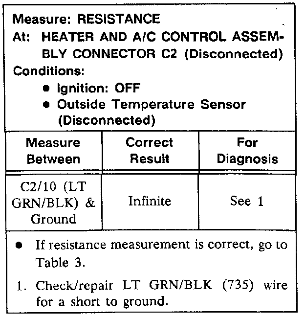Outside Temperature Sensor Test (Table 2 Of 3):