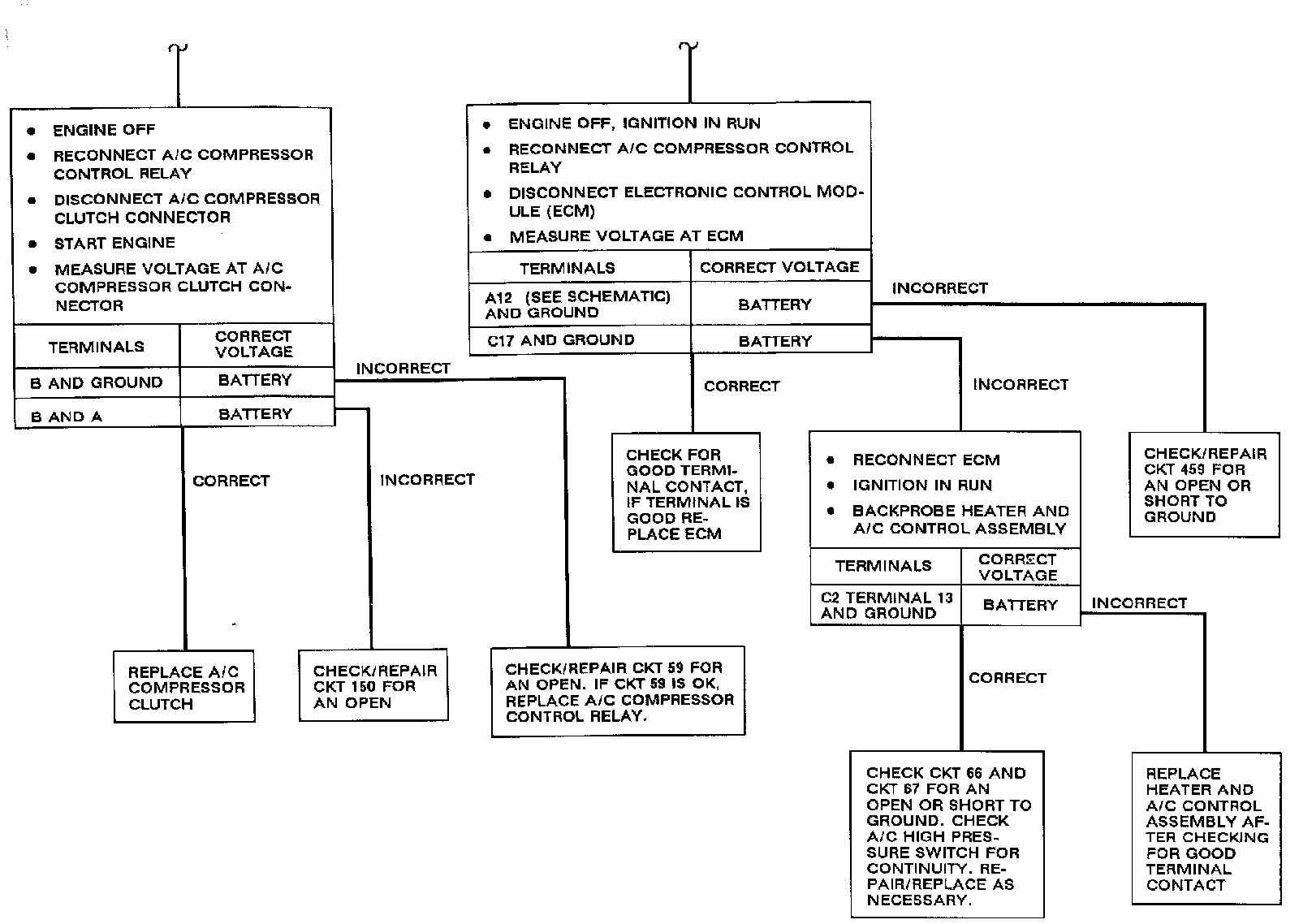 Use the trouble tree (Part 1 and 2) to diagnose any faults involving compressor operation.
