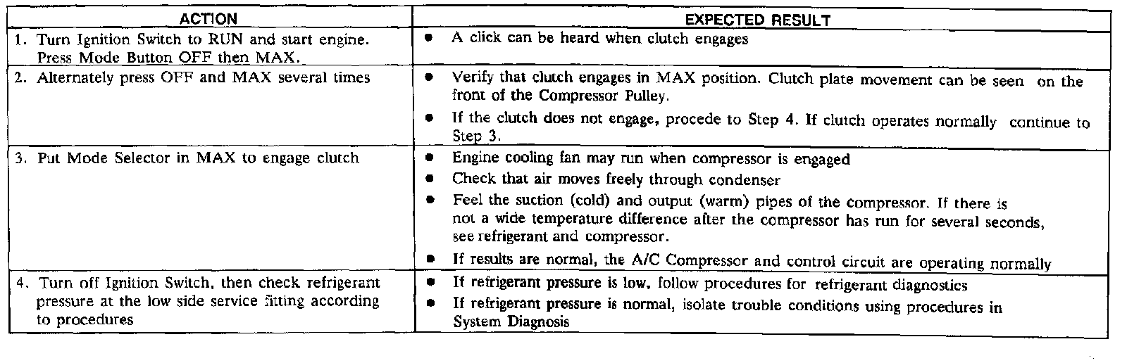 ^ Use the System Check Table as a guide to normal A/C Compressor operation.
