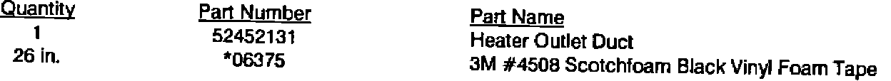 ^ Install the 1/8 X 3/4 in. foam tape to the grooved mounting surface of the new heater outlet duct, approximately 11-3/4 in. of tape across the top of the outlet duct and 7 in. of tape on each side. Trim off excess tape.