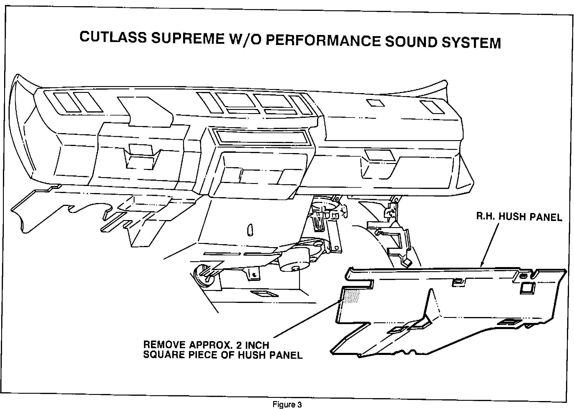 ^ Cut off a two inch square piece of the R.H. hush panel as indicated in Fig.3. This may be done with a saw blade or a bench grinder.