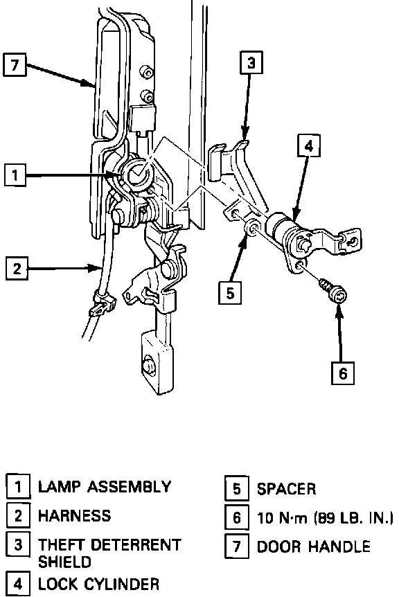 1. Door handle cover assembly. Refer to DOORS (Section 10-5) in the Service Manual.