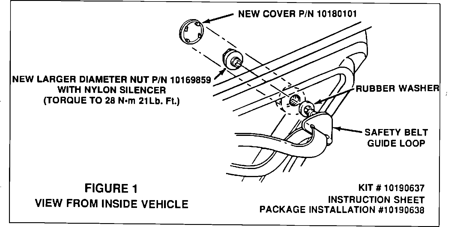 To correct this condition, dealers are to replace all front shoulder belt guide loop attachment nuts according to the instructions contained in this Product Campaign Bulletin.