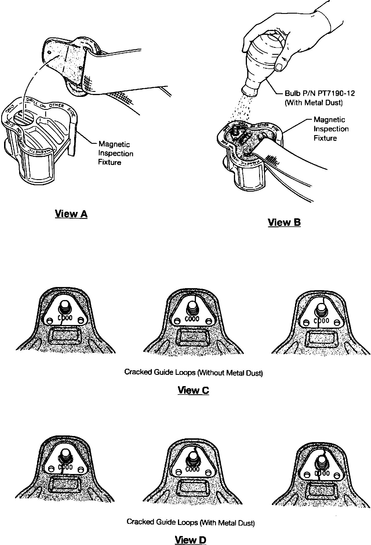 3. Apply a small amount of Crack Detection Powder (metal dust) to the guide loop (see View B).