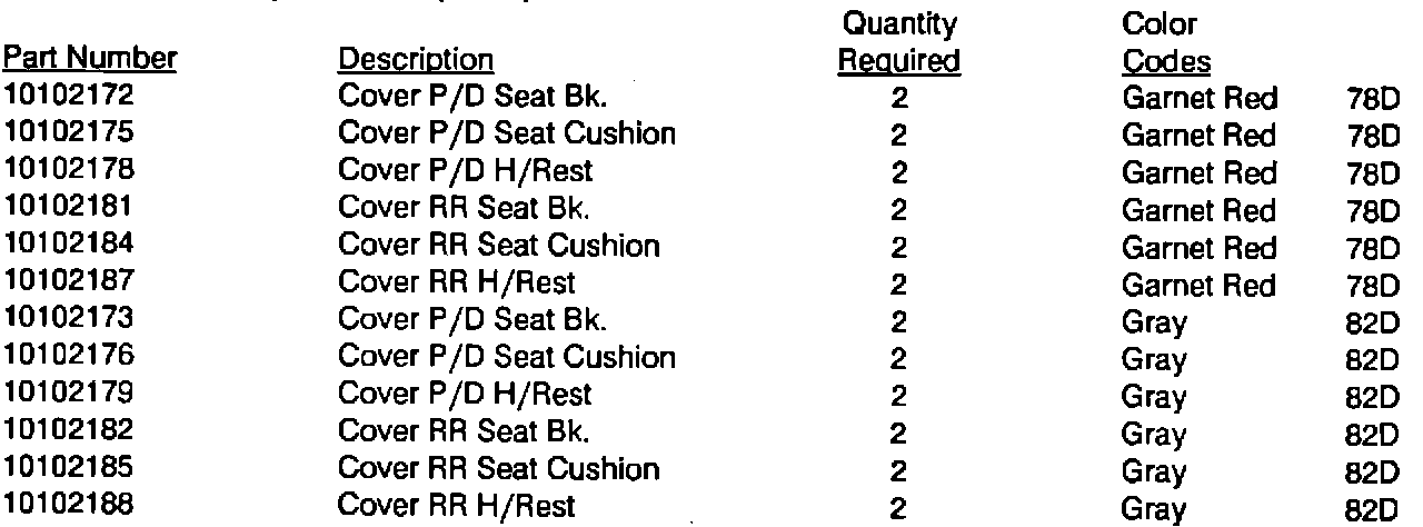 Replace all seat trim front and rear with 1990 material. All new 1990 material MUST BE USED AS IT IS SLIGHTLY DIFFERENT IN COLOR SHADES. GMSPO has removed all 1988/89 trim (Codes 78D and 82D) from stock.