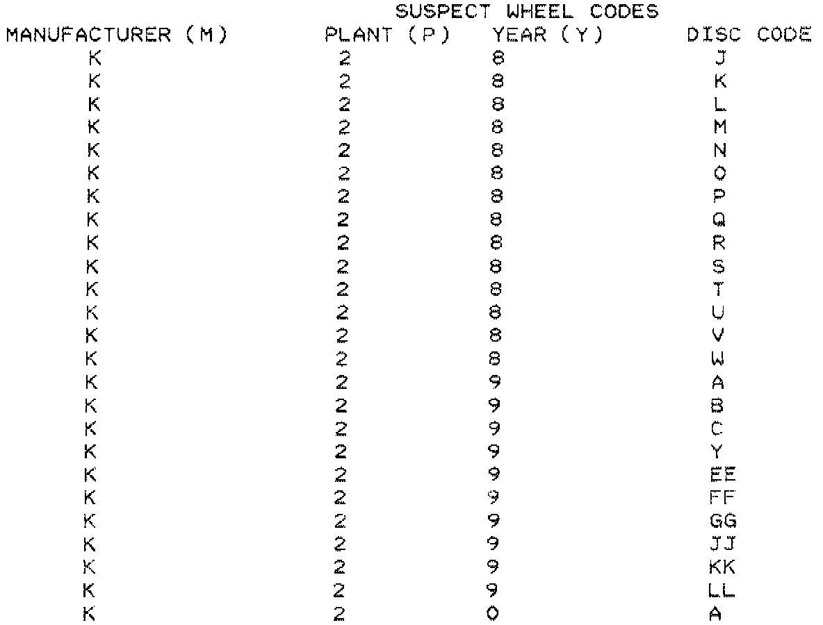 THE WHEEL MUST BE REPLACED IF CODES MATCH ANY OF THE COMBINATIONS OR ARE UNREADABLE/ILLEGIBLE: