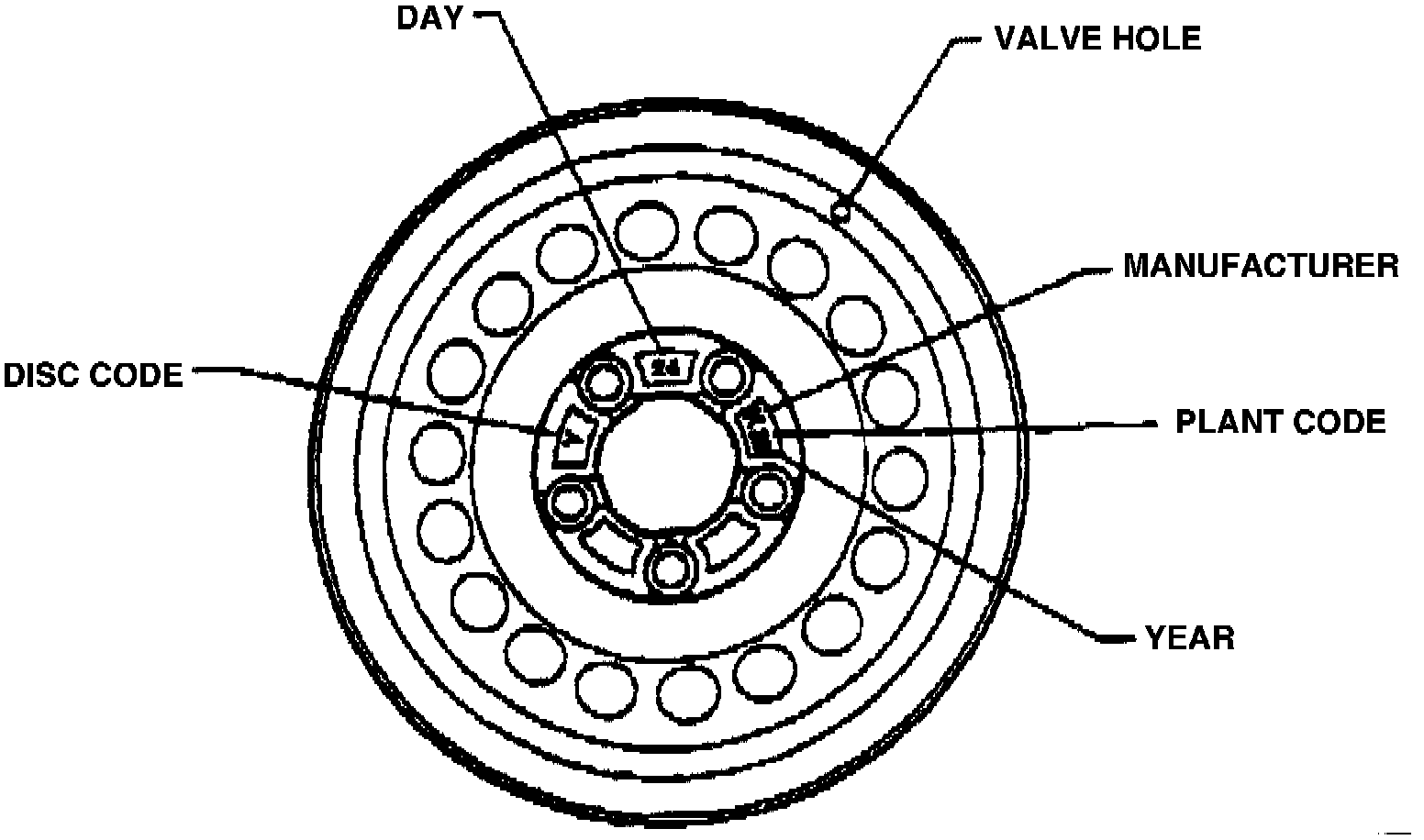 3. Read and record on repair order date code data stamped on center portion of wheel in the following order, (See Figure 1):