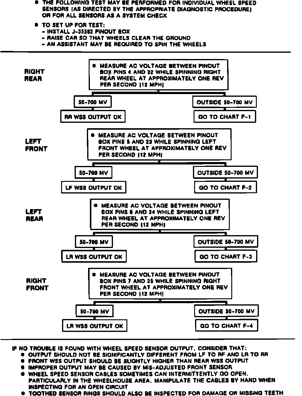 Fig. 90 Chart F, Wheel Speed Sensor Output. 1989-90 Models Except 6000: