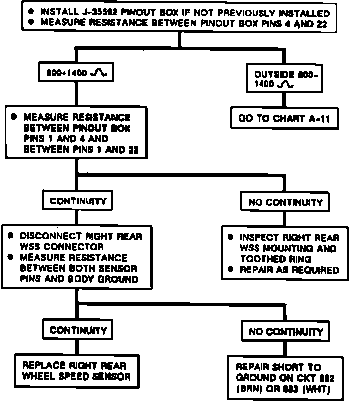 Fig. 91 Chart F-1, Right Rear WSS Output. 1989-90 Models Except 6000: