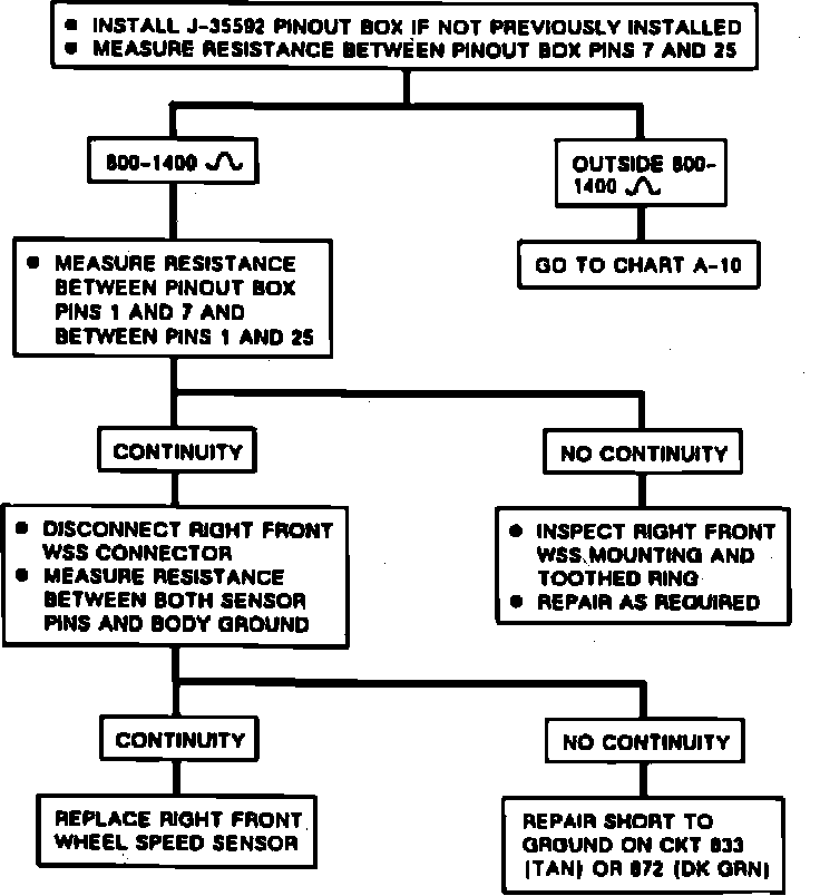 Fig. 94 Chart F-4, Right Front WSS Output. 1989-90 Models Except 6000: